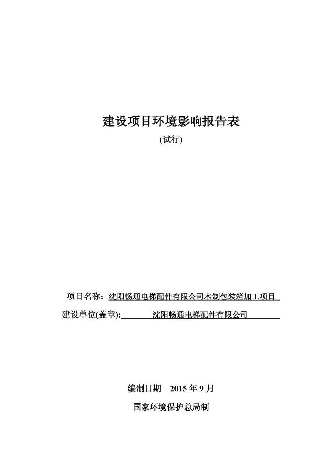 沈陽暢通電梯配件有限公司木制包裝箱加工項目
